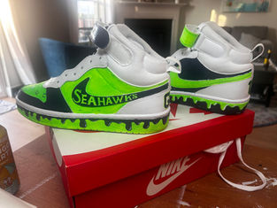 Many say that fashion is an extension of who you are, and shoes are no exception. All of the photos shown started as a blank canvas (an all white shoe) and finished as a completely unique one of a kind shoe. Create a custom idea or replicate an already existing logo or concept. Ship a pair directly to me, or I can purchase the shoes on your behalf to get your project started.